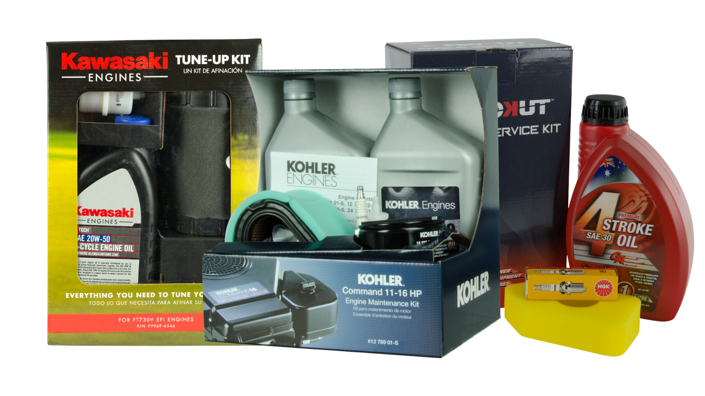 Engine service kits for Ride Ons and Push Mowers