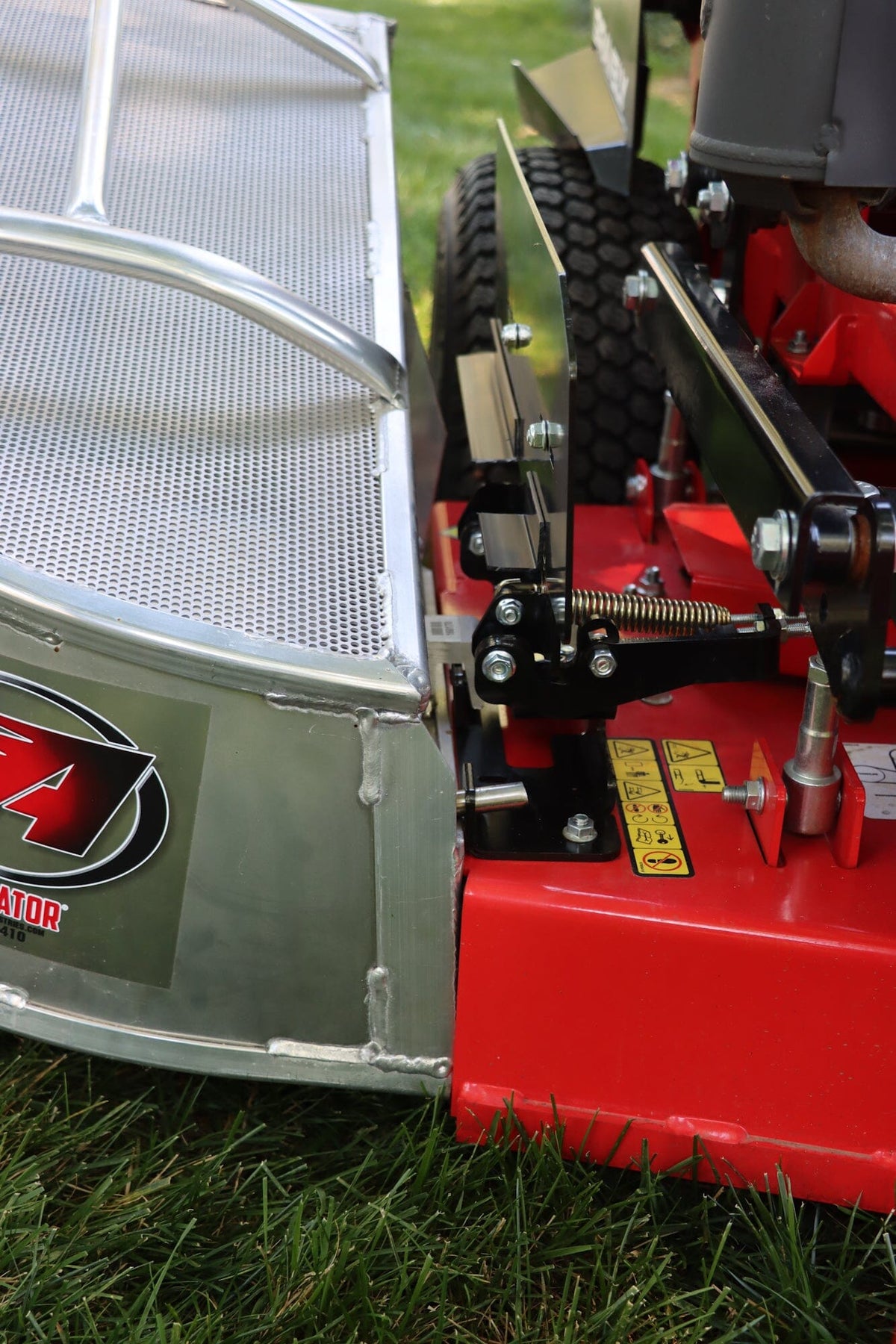 The GrassFlap is the ideal OCDC, operator controlled discharge chute. The foot-operation allows the user to close the discharge chute at any time, any place without taking their hands off the mower’s controls. The chute blocker plate opens a full 180 degrees and completely clears the edge of the mower to allow the mower to fit in those tight spaces.